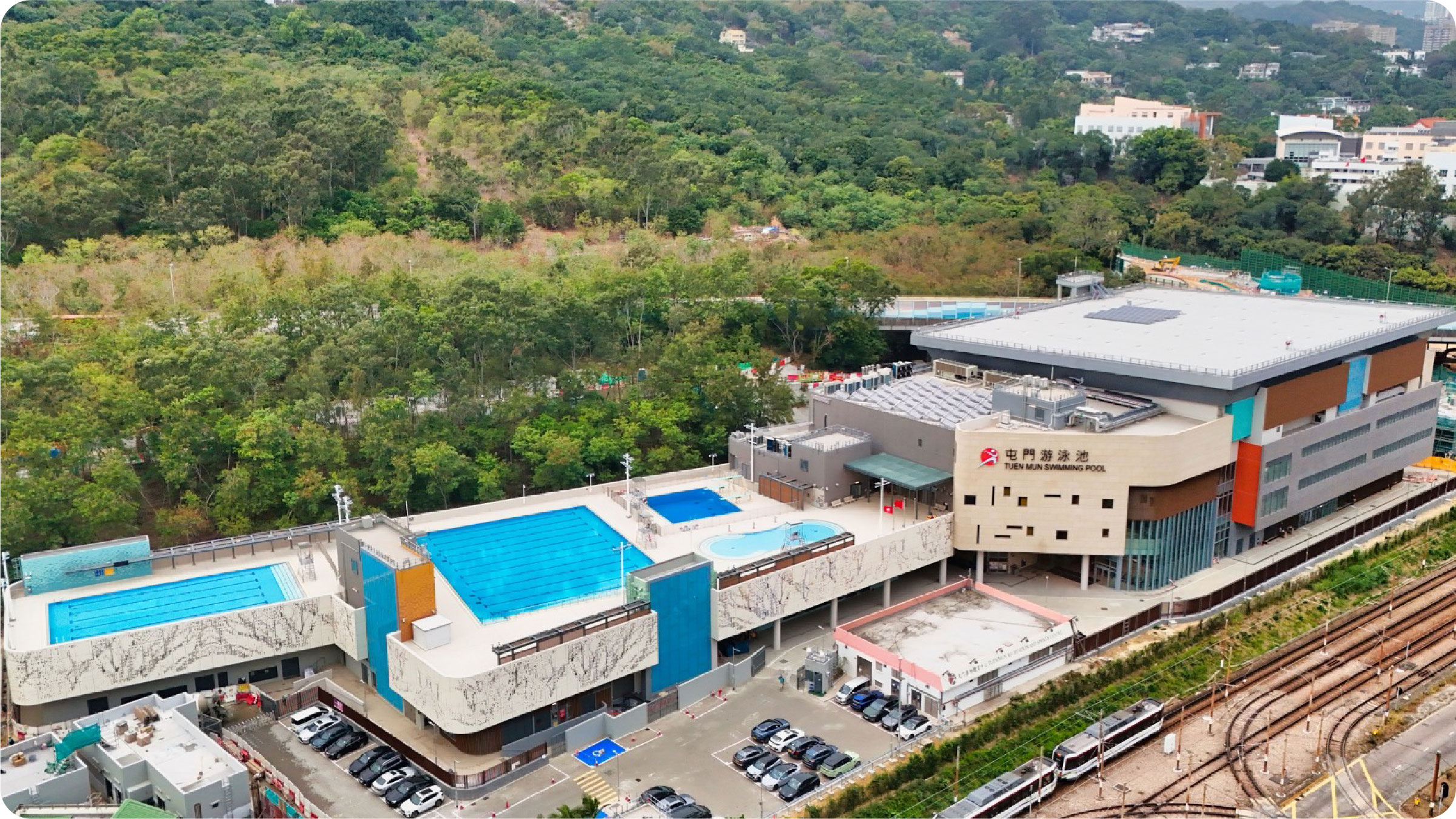 • 新泳池的各項設施更貼合居民需求,包括兩個全天候室內暖水池及四個室外泳池,室內觀眾看台座位數目增加近一倍至1,200個,並加入更多無障礙設施。